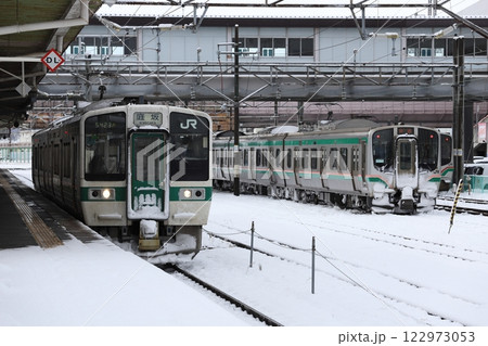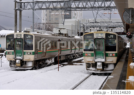 冬の米沢駅に停車中の山形線/奥羽本線719系(米沢⇔山形)