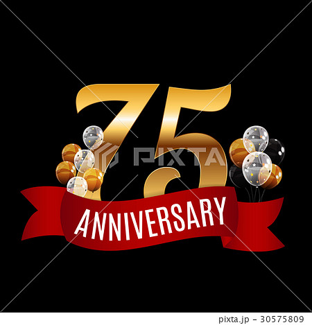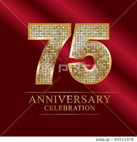 75 Anniversary gold numbers with golden confetti. Celebration 75th anniversary event party template