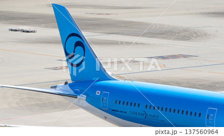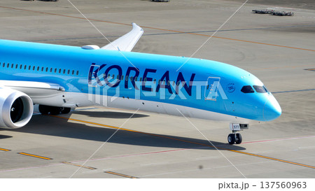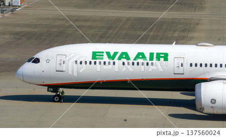 福岡空港に着陸して駐機場へ向かう旅客機 ボーイング787