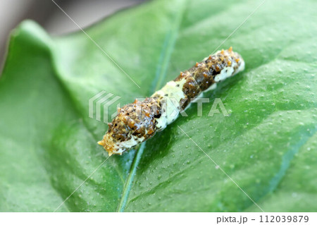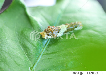レモンの葉を食べるアゲハの幼虫 芋虫