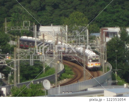 大井町へ向けて住宅街をゆく東急大井町線の8090系