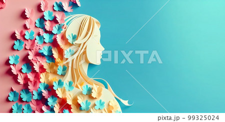 Illustration of face and flowers style paper cut with copy space for international women's day
