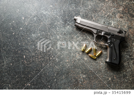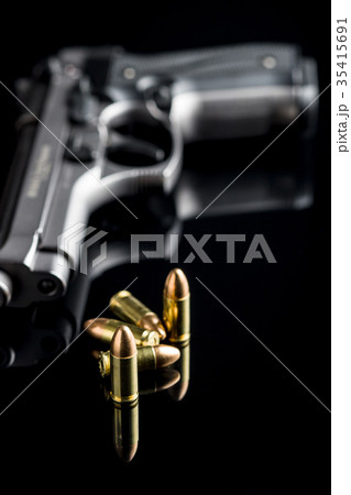9mm pistol bullets and handgun.