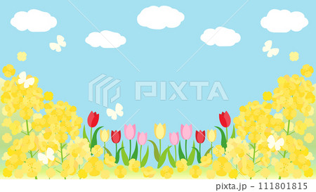 菜の花とチューリップと青空の春の丘のカード アスペクト比16:9バージョン