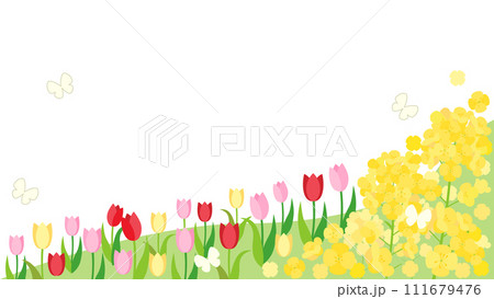 菜の花とチューリップの春の丘のカード アスペクト比16:9バージョン