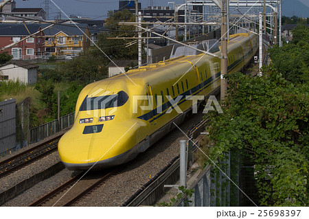 海の近くを走る幸せの黄色い新幹線ドクターイエロー
