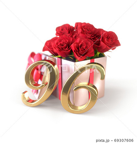 birthday concept with red roses in gift isolated on white background. ninety-sixth. 96th. 3D render