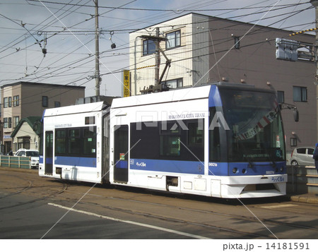 【一部加工人物運転手ロゴぼかし済】函館駅前カーブを通過する函館市電 路面電車