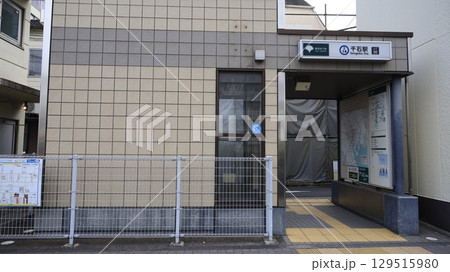 日本の東京都市景観 都営地下鉄 都営三田線 巣鴨駅(出入口A3)を望む。画面左奥はJR巣鴨駅