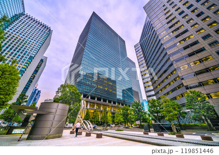 日本の東京都市景観 大手町駅(出入口)などを望む