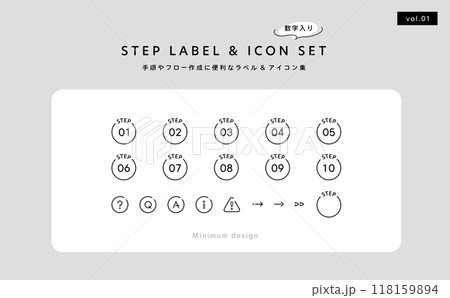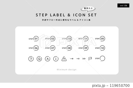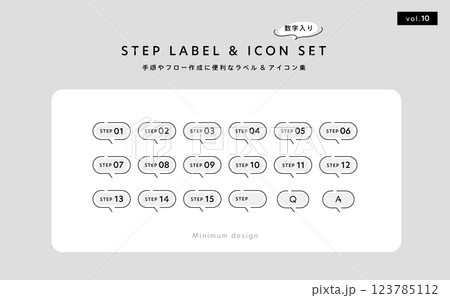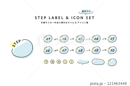 数字入りフローラベルとステップアイコンの手順用あしらい素材セット7