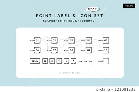 連番数字入りポイントラベルとアイコンのあしらい素材セット1
