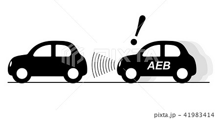 自動ブレーキ・緊急ブレーキの概念図・イラスト|AEB 自動車のイラスト|ベクターデータ
