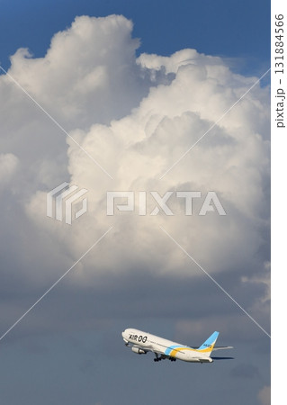 離陸、上昇する旅客機 夏空に離陸するエアドゥー機