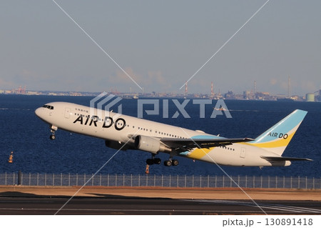 離陸、上昇する旅客機 離陸するエアドゥー機