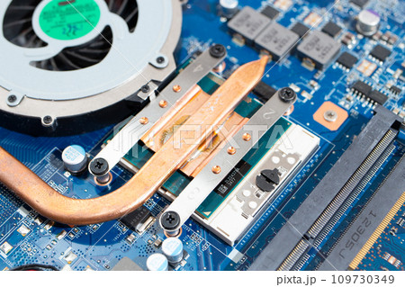 ノートパソコンのマザーボード上のCPU(中央演算処理装置)