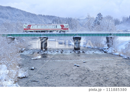 秋田内陸縦貫鉄道 桧木内川を渡る列車(羽後長戸呂-八津)