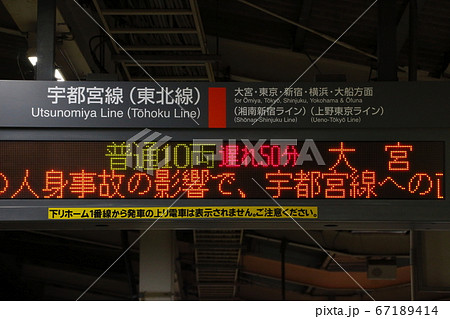 宇都宮線の運転見合わせを知らせる発車標(古河駅)