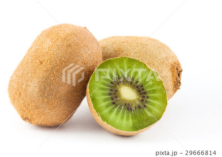 Whole kiwi fruit isolated on white background. Clipping Path. Full depth of field.