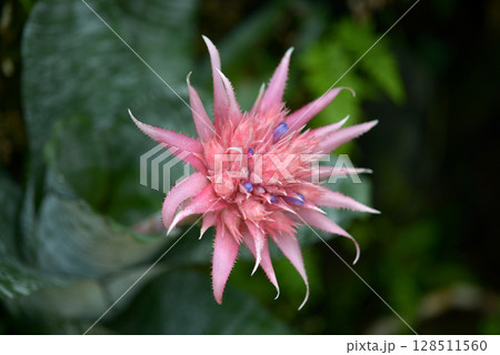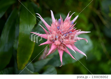 ピンク色のエクメアファシアータの苞がきれいです。学名はAechmeaです。