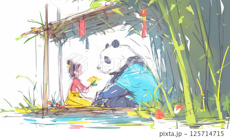 さようなら・元気でね!わたしたちのパンダ(クレヨン+水彩画風)