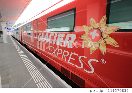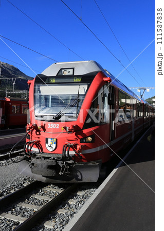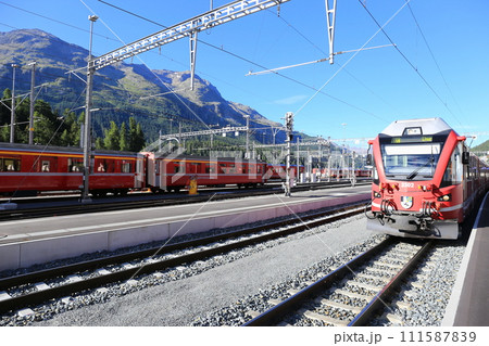 サンモリッツ駅に停車する氷河急行/グレッシャー・エクスプレス(スイス グラウビュンデン)