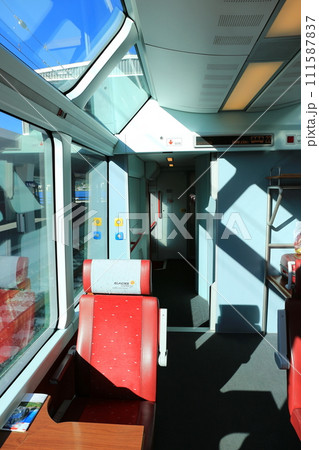 サンモリッツ駅に停車する氷河急行/グレッシャー・エクスプレスの車内(スイス グラウビュンデン)