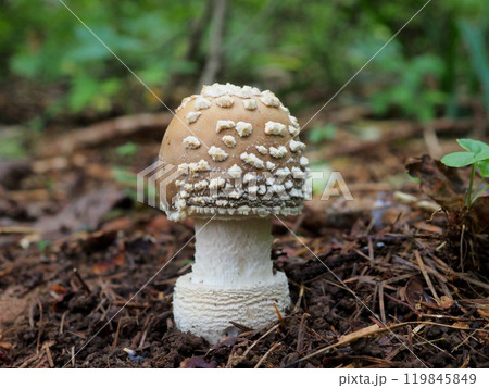 森に自生するイボテングタケ(毒キノコ)