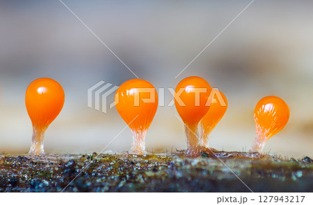 Orange slime mold - Trichia decipiens, it's a small protist organism