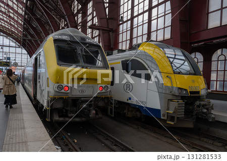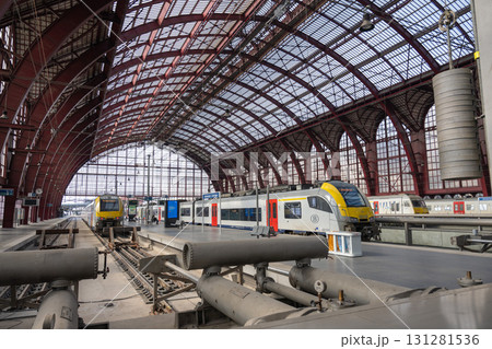アントワープ中央駅 プラットホームと列車/アントワープ、ベルギー