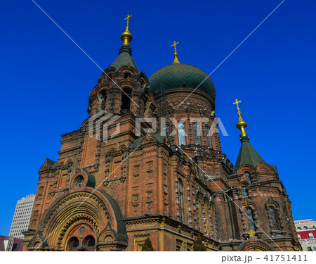 Harbin, CHINA-MAY 02, 2025-Aerial view of Saint Sophia Cathedral in downtown of Harbin, The renowned landmark of Harbin, HeiLongJiang, China.