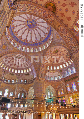 The beautiful decorated cupolas of the Blue Mosque, Istanbul, Tu