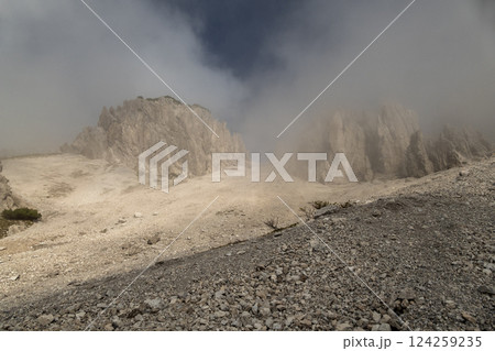 Eppzirler Scharte, Karwendel mountains, Solsteinhaus hut on Karwendel Hohenweg, Austria