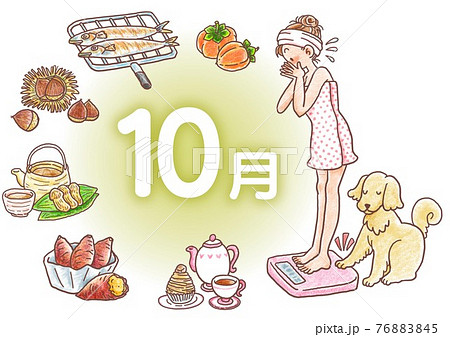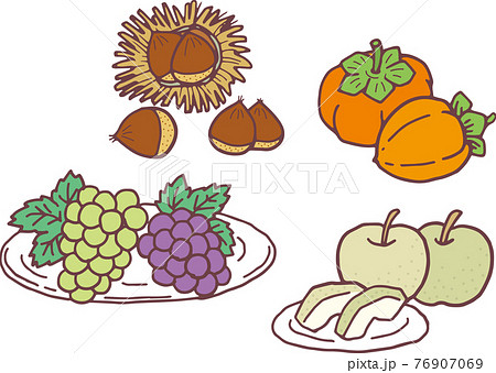 日本の秋を彩る様々な風物詩 アイコン セットストックイラスト素材