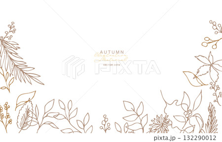 草木の線画イラスト。秋の草木のベクターフレーム。冬の植物シンプル背景。
