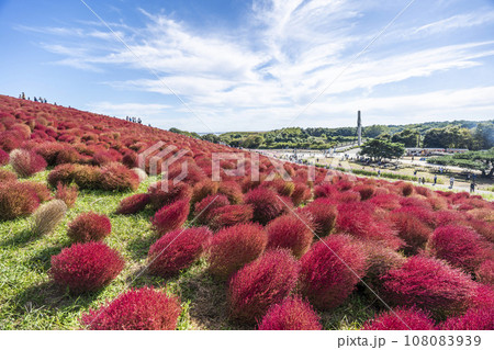 秋の国営ひたち海浜公園 赤く紅葉したコキア 茨城県ひたちなか市