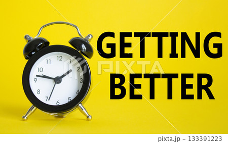 Getting better symbol. Beautiful yellow background with alarm clock. Business and Getting better concept. Copy space.