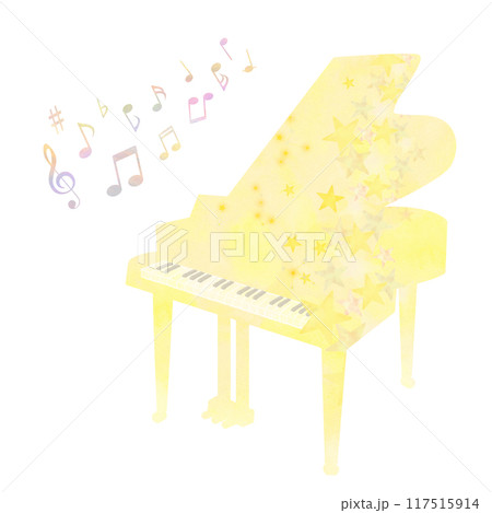 星の黄色いグランドピアノ (水彩風ベクター)