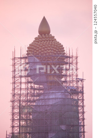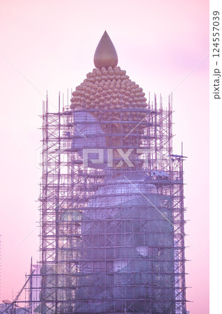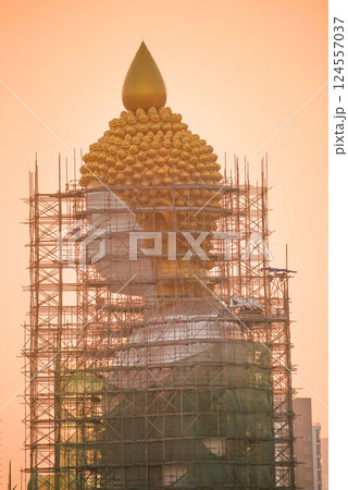 修繕中のタイ・バンコクの寺院「ワット・パクナム」の巨大仏像