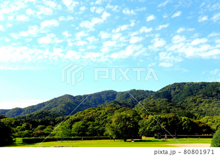 秋晴れの島見緑地公園とイチョウの木々(新潟県新潟市)
