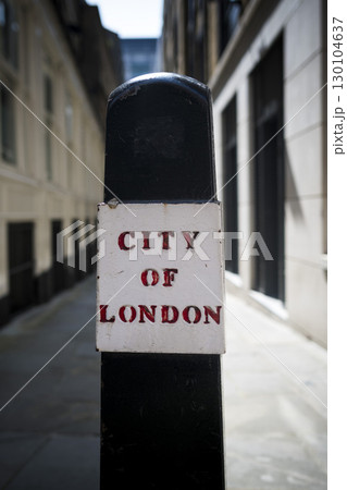 City of London sign on bollard in street off Ludgate Hill