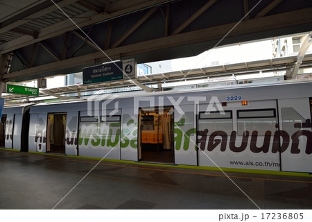 バンコク・BTS国立競技場駅 停車中のスカイトレイン 車両