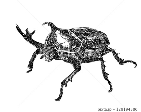 カブトムシ単体のペン画イラストの透過PNG素材