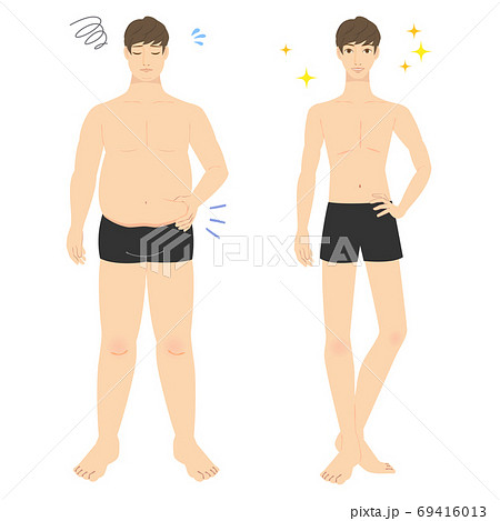 ダイエットをした男性の腹部 ビフォーアフター 線画