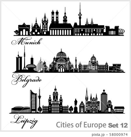 City in Europe - Munich, Belgrade, Leipzig. Detailed architecture. Trendy vector illustration.