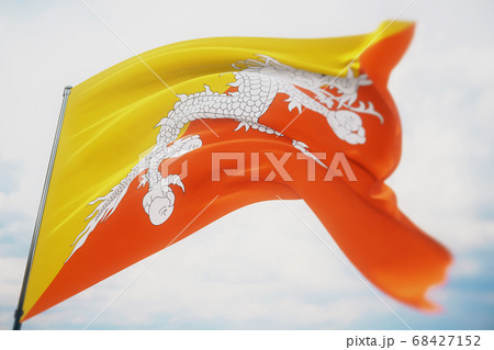 Waving flags of the world - flag of Bhutan. Shot with a shallow depth of field, selective focus. 3D illustration.