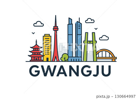Gwangju city skyline with iconic buildings and landmarks