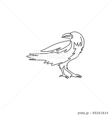 Single continuous line drawing of black raven for company logo identity