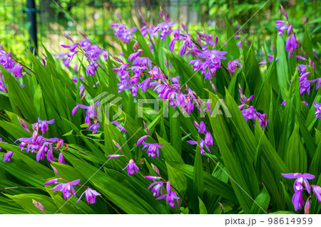 春の庭に咲く紫色の花 紫蘭