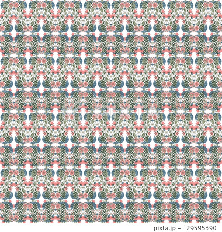 Seamless pattern with exotic trees, leaves and flowers. Vector.